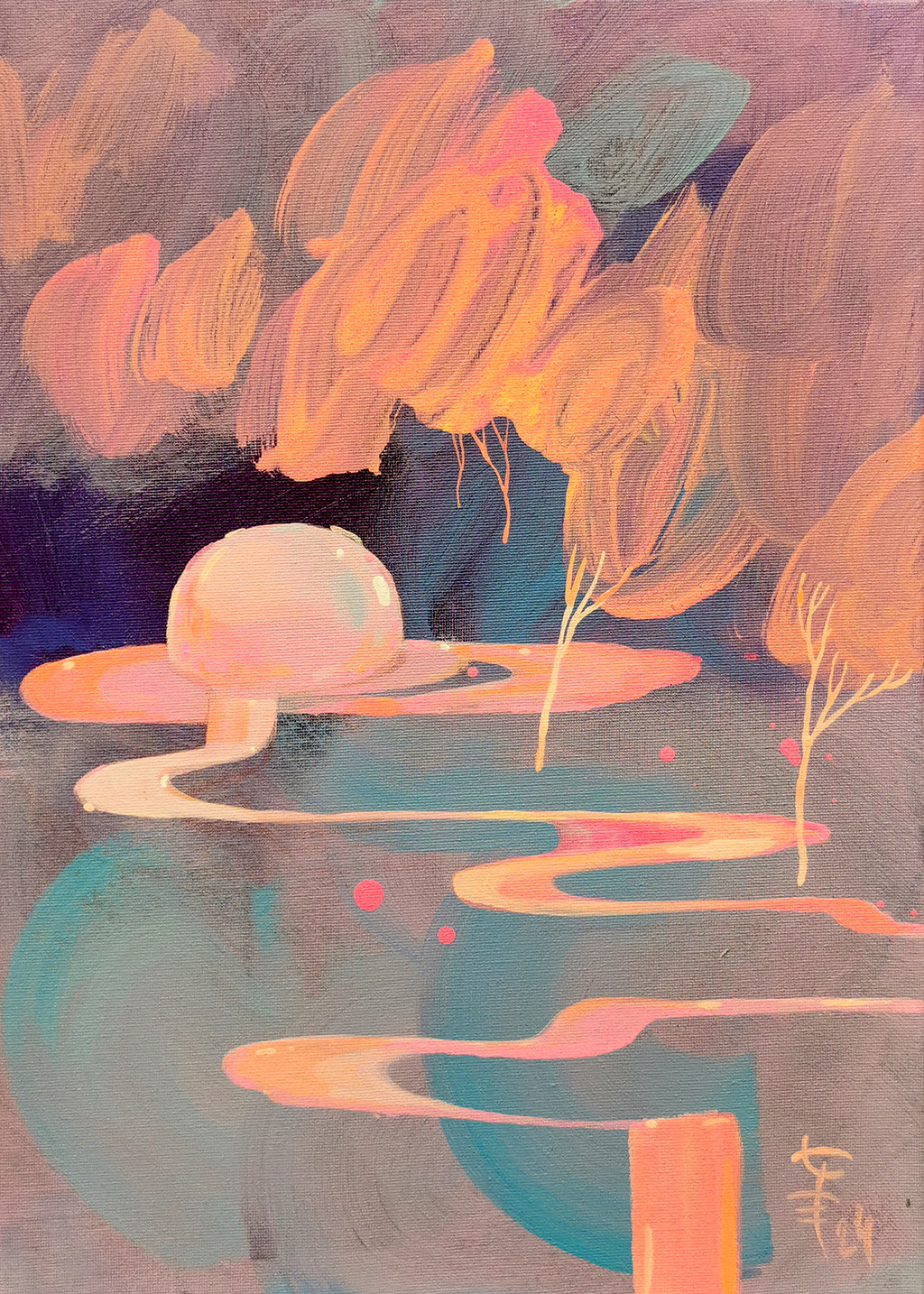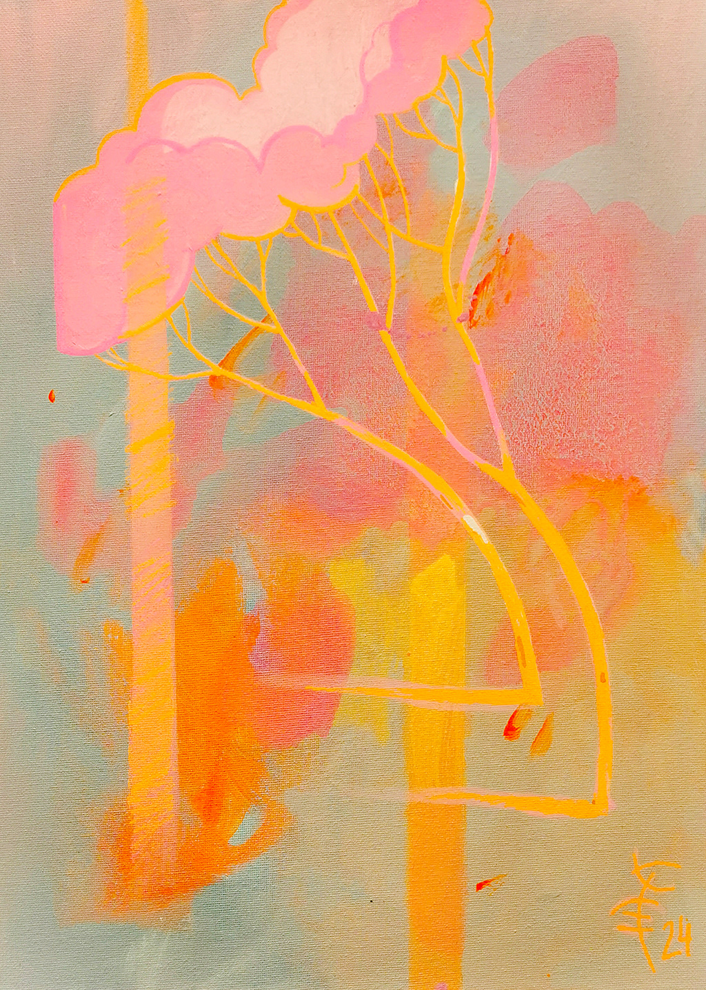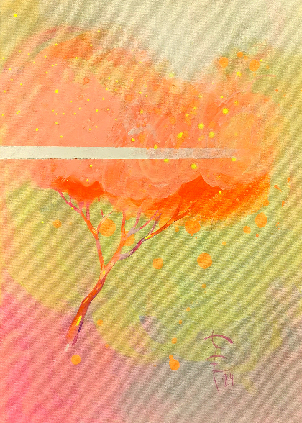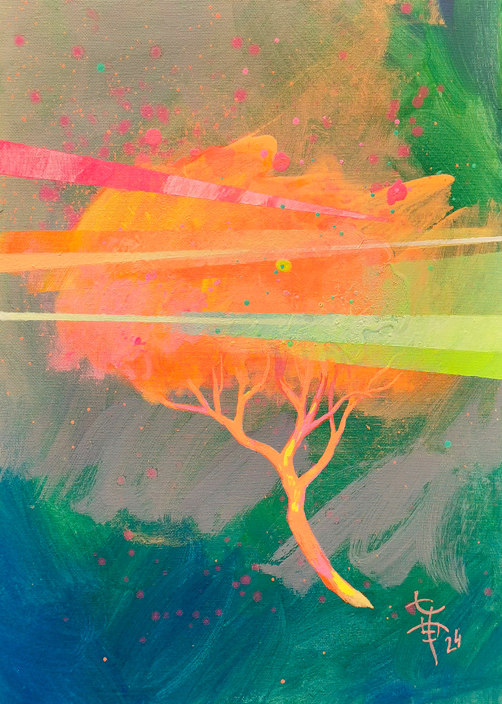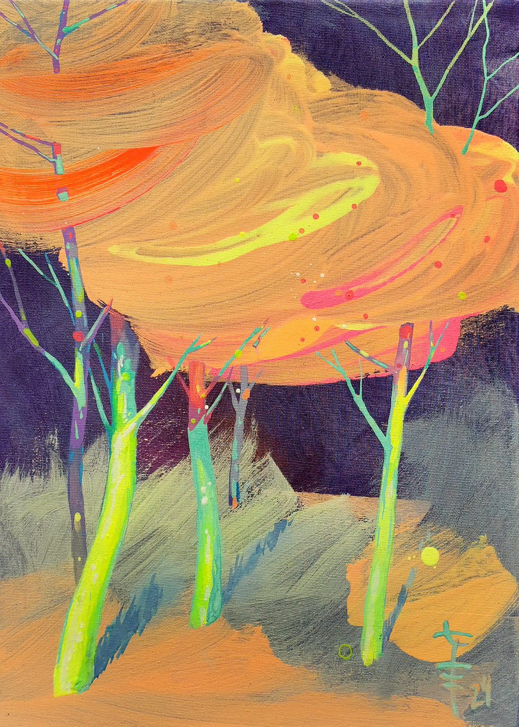 akryl na płótnie, farba fluorescencyjna