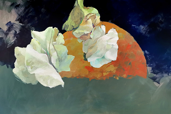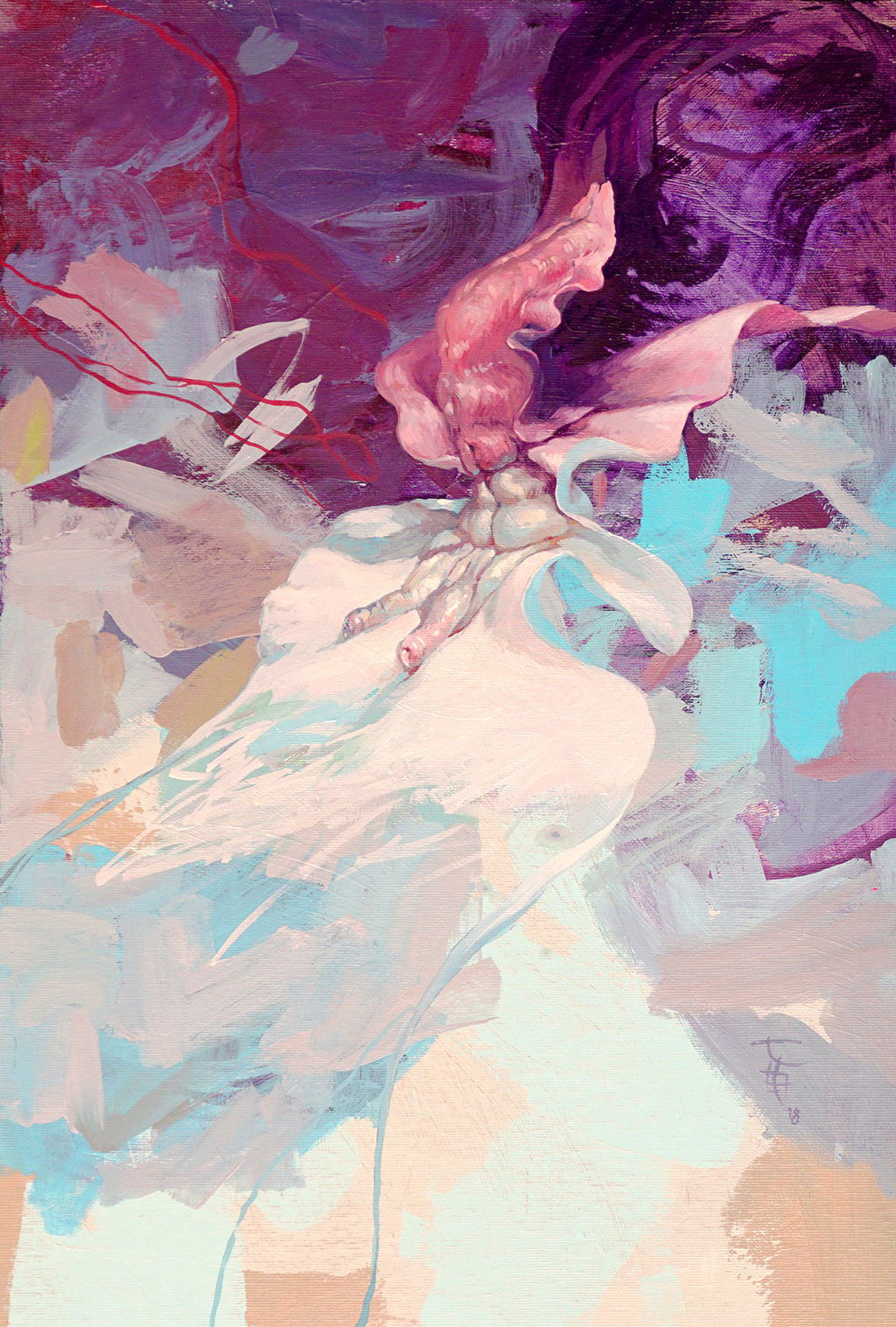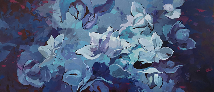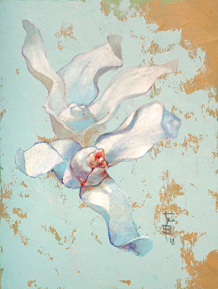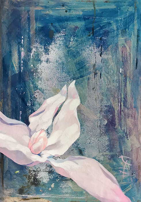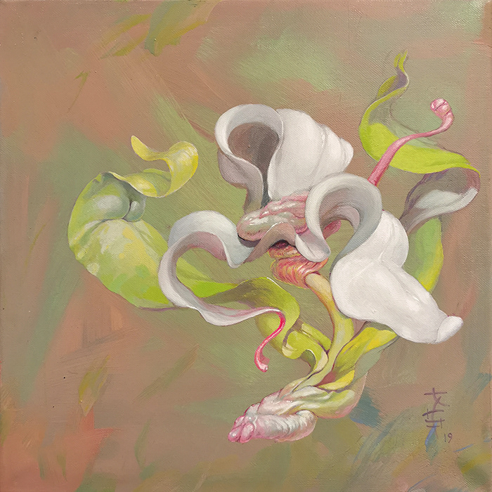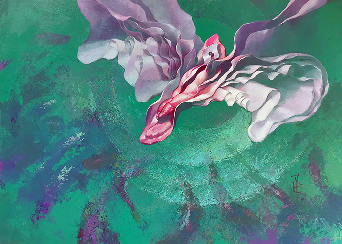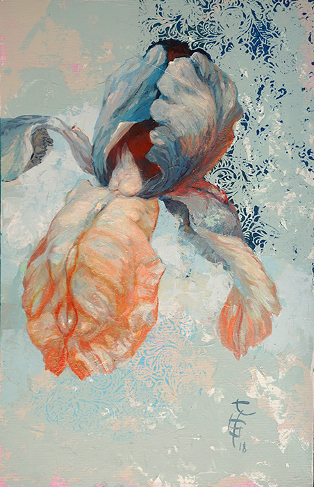Kwiat bywał symbolem kobiecego piękna, ale zbyt często jest ono rozumiane czysto fizycznie, a kobiety od wieków katują swoją cielesność, aby dostosować się do panujących akurat standardów. W sztuce obraz kobiety przeszedł długą drogę, od obiektu kultu jako obrazu płodności i obfitości, przedstawień antycznej boskości, przez różne formy idealizacji do współczesnego wypaczenia i nadużyć. W moich obrazach staram się go odrodzić. Nie opowiadam o fizycznym pięknie, a jednak chcę, aby cielesność w tych obrazach była bardzo obecna, namacalna, mięsista, zmysłowa, a jednocześnie symboliczna. Chcę mówić o pięknie kobiecej pełni, które wymyka się kanonom. Poprzez cielesność dotknąć głęboko ukrytych tematów tabu, oswoić je, pokazać naturalność, przywrócić godność przez mój własny pokłon i docenienie kobiecej świątyni.