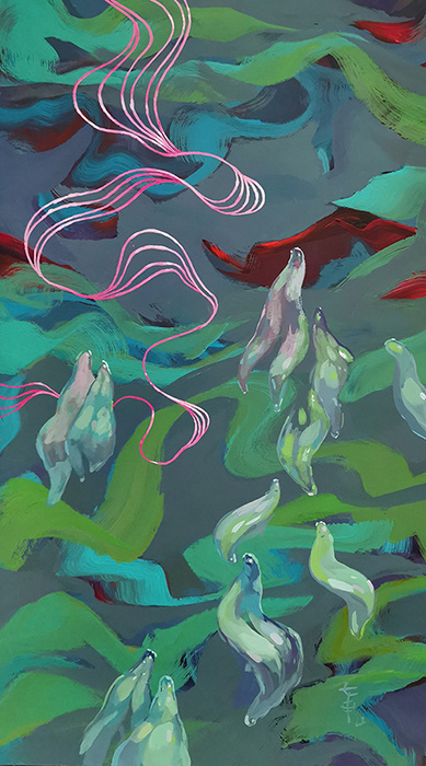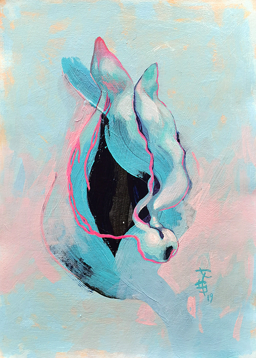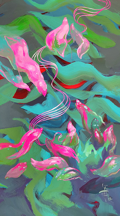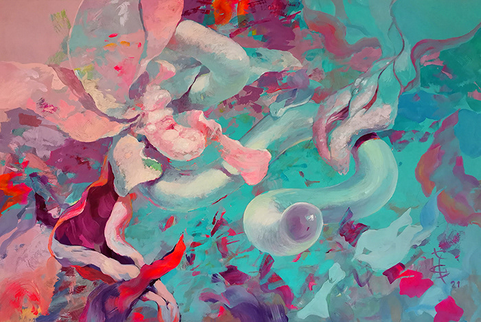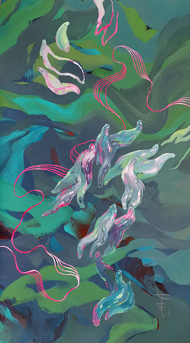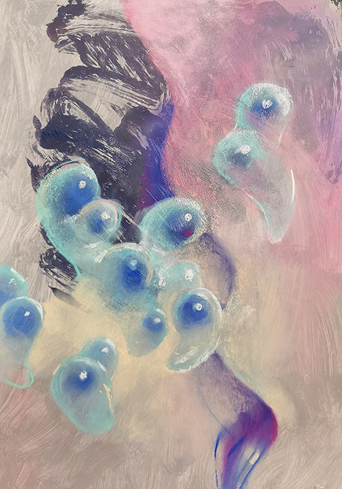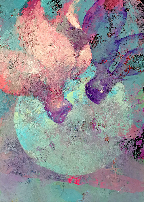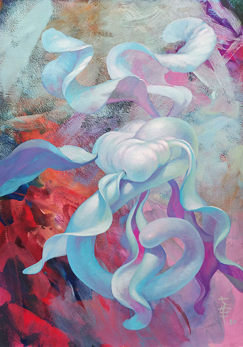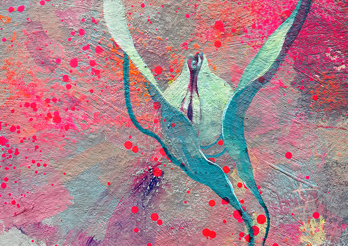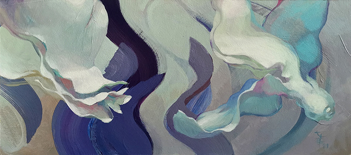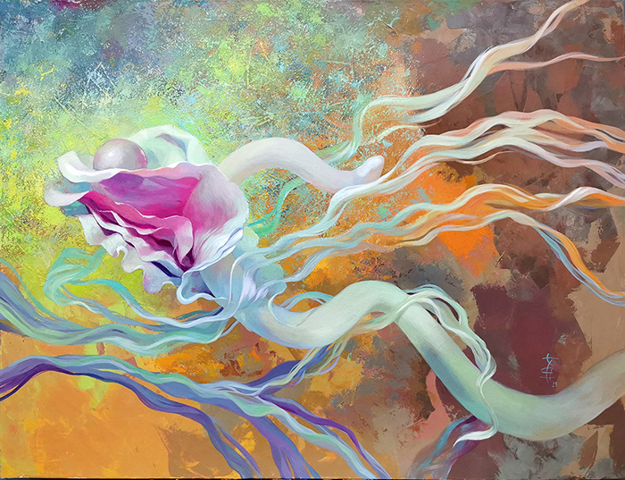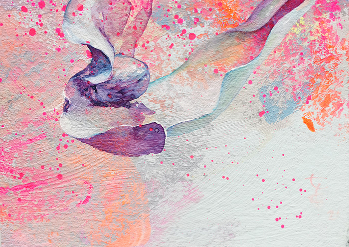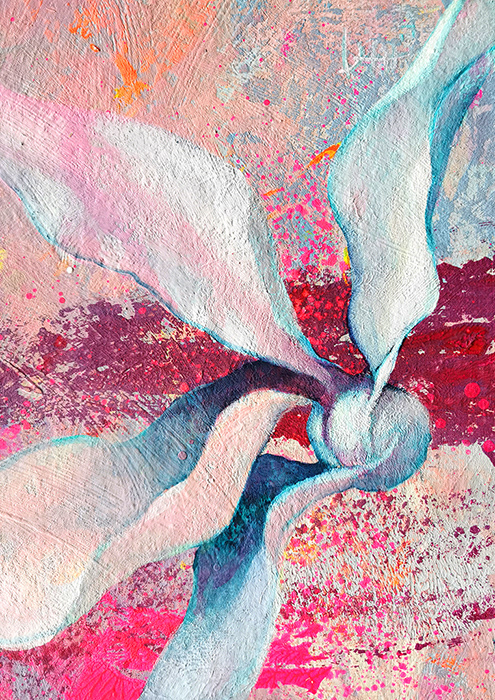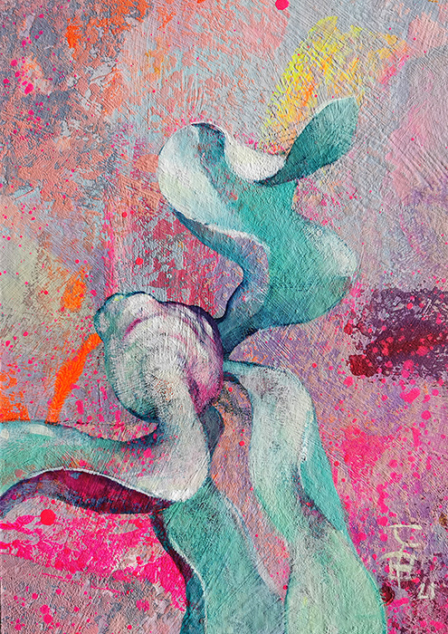 Czas podzielić się moją pracą na temat, który wciąż mnie porusza. Prace nad cyklem Essence rozpoczęłam w 2017 roku i regularnie do niego wracam, odkrywając nowe jakości. Cudownie jest doświadczać tych emocji podczas malowania obrazów z tego zestawu. Chcę opowiedzieć o kobiecym doświadczeniu, pasji, kreatywności i radości — wszystkie te elementy wibrują w tym projekcie.
