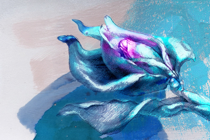 Zasłyszane gdzieś zdanie, że nikt nie zastanawia się nad tym, czy róża cierpi kiedy rozkwita, zainspirowało mnie do stworzenia opowieści o kobiecych inicjacjach i transformacjach, które prowadzą je do świadomości i pełni. Bywają one dla nich bolesne i niezrozumiałe, gdy rozkwitają do swej istoty, pozbawione nierzadko wsparcia kobiecego rodu.