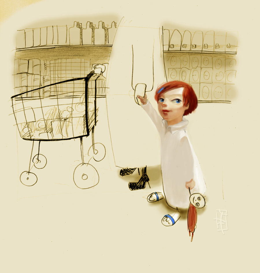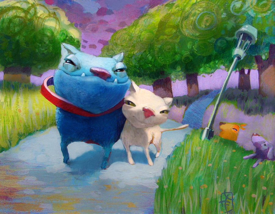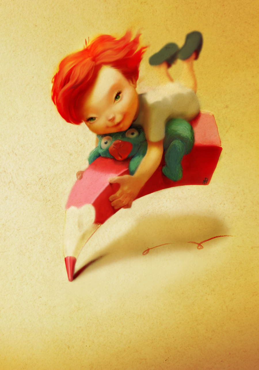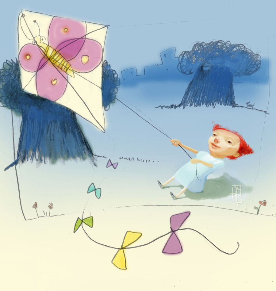 Zestaw ilustracji dla dzieci, trochę tradycyjnych i trochę cyfrowych.