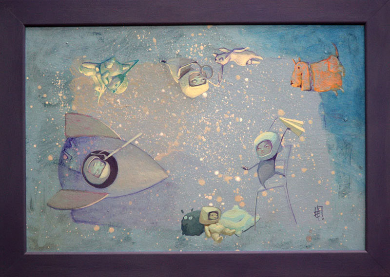 Prezent na chrzest mojego chrześniaka, akryle na desce, 2011