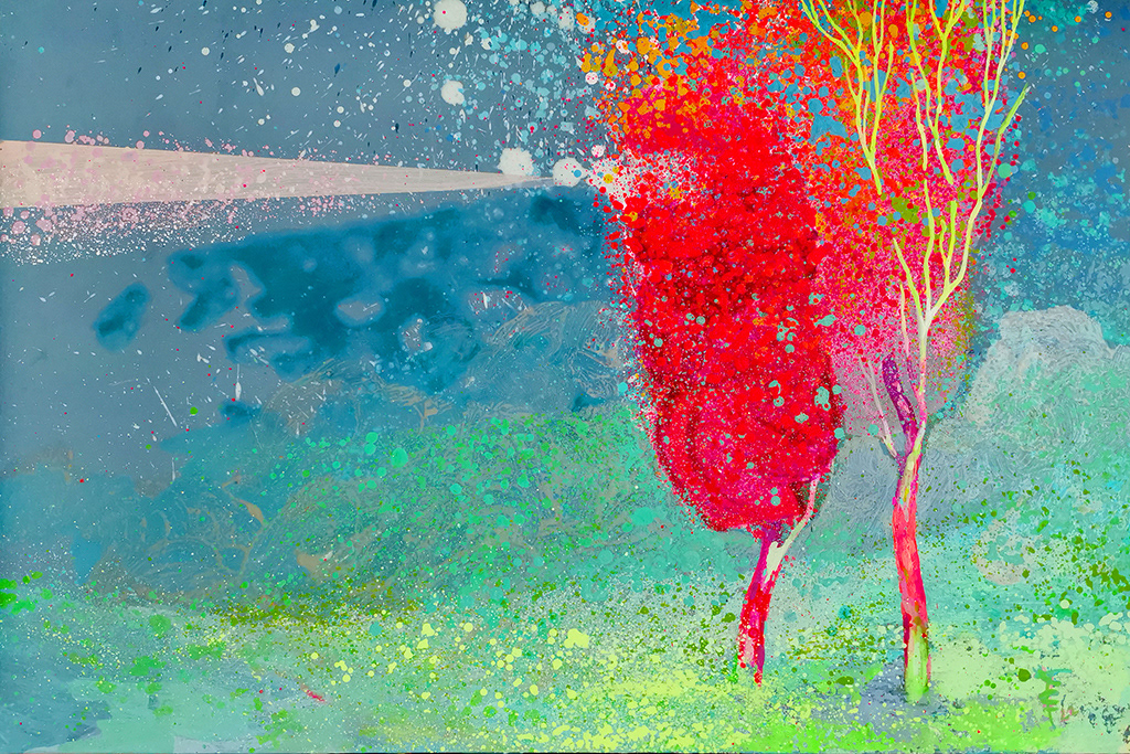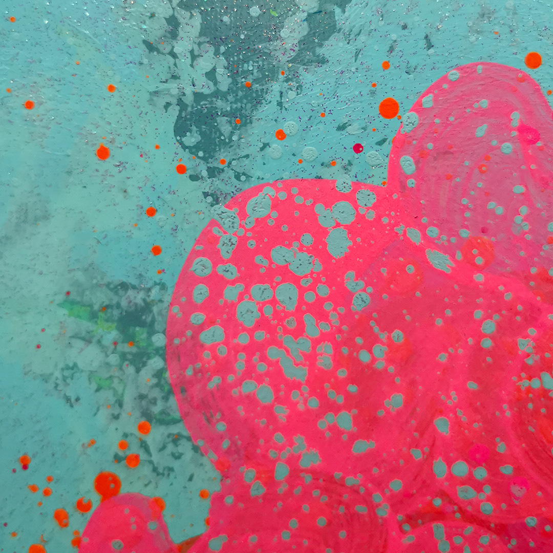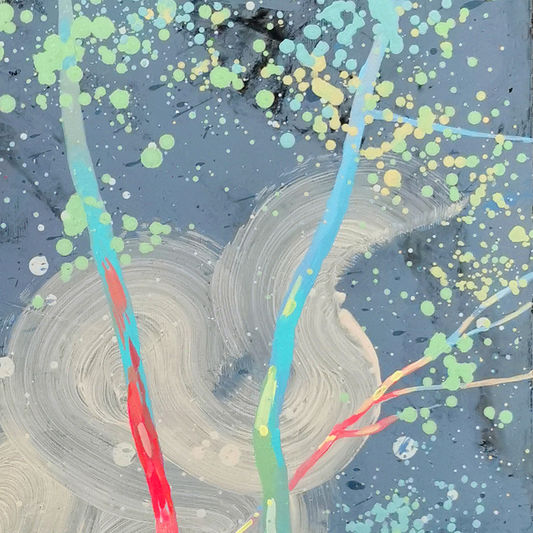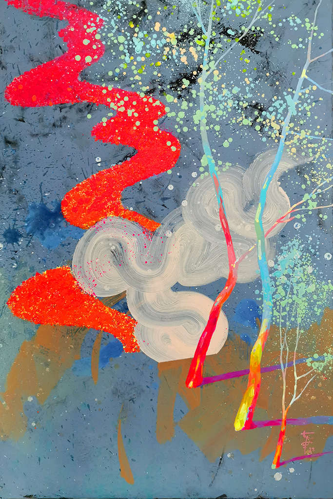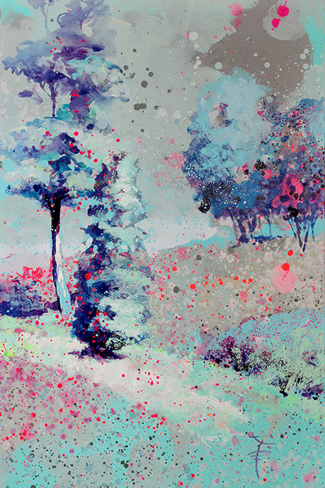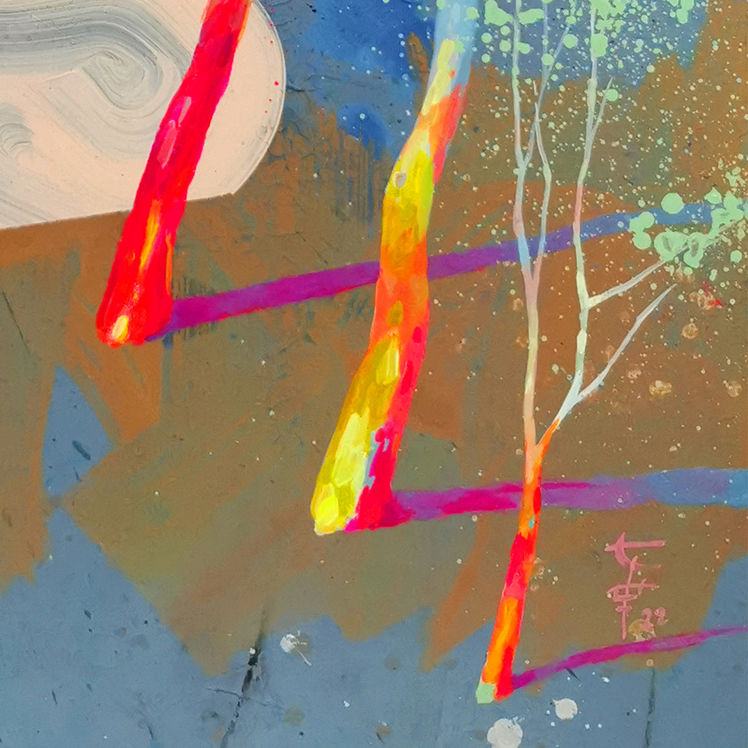Większość prac ma elementy farby fluorescencyjnej, metalicznej, na niektórych jest brokat, co czyni prace zmienne w zależności od oświetlenia, nawiązując tym samym do zmienności prawdziwych pejzaży. Zderzenie form, kształtów, sugestii, daje za to ogromną przestrzeń do interpretacji i tym samym procesu współtworzenia dla widza.