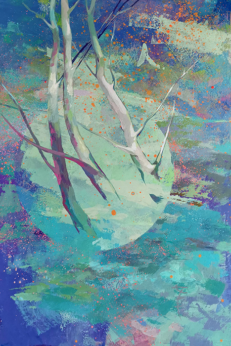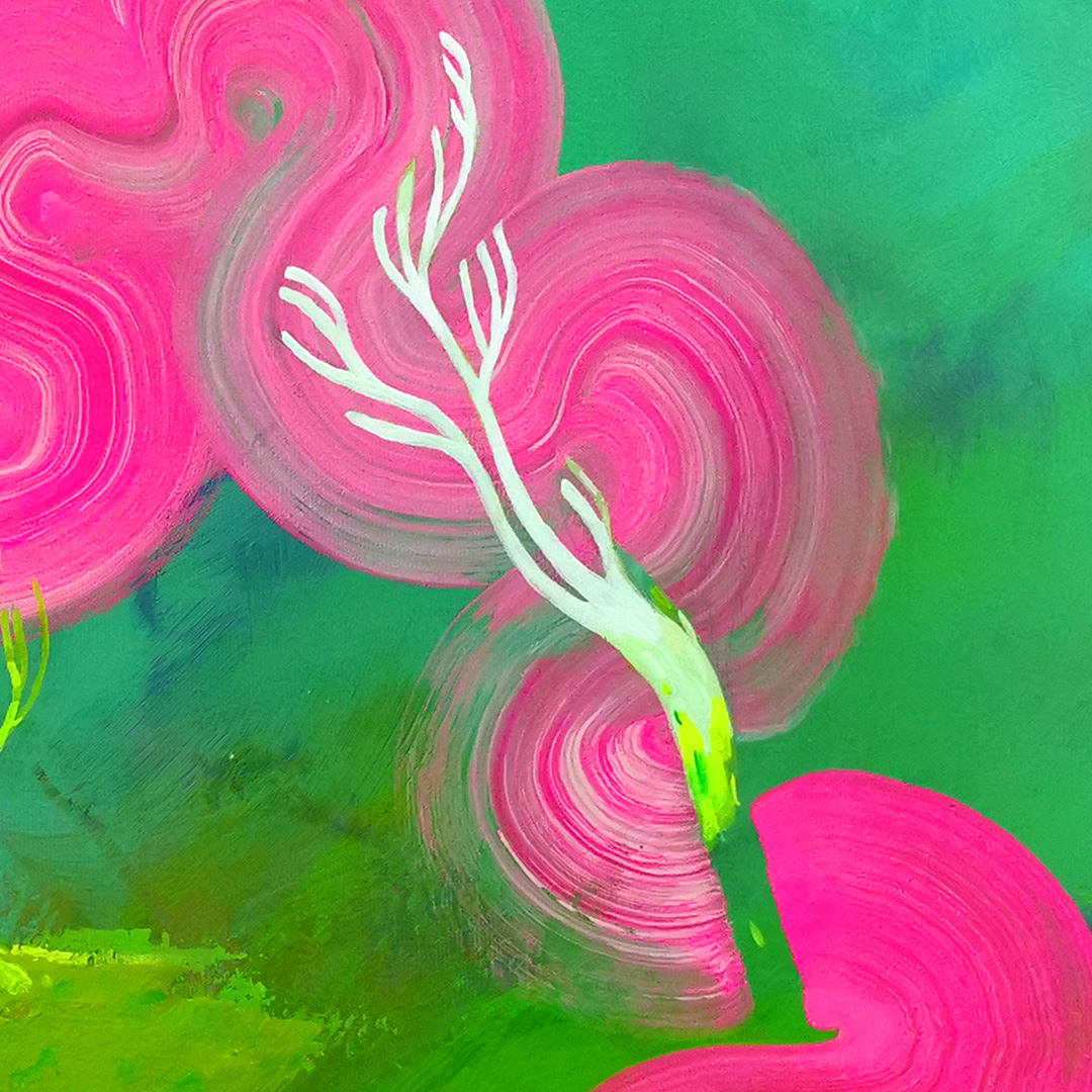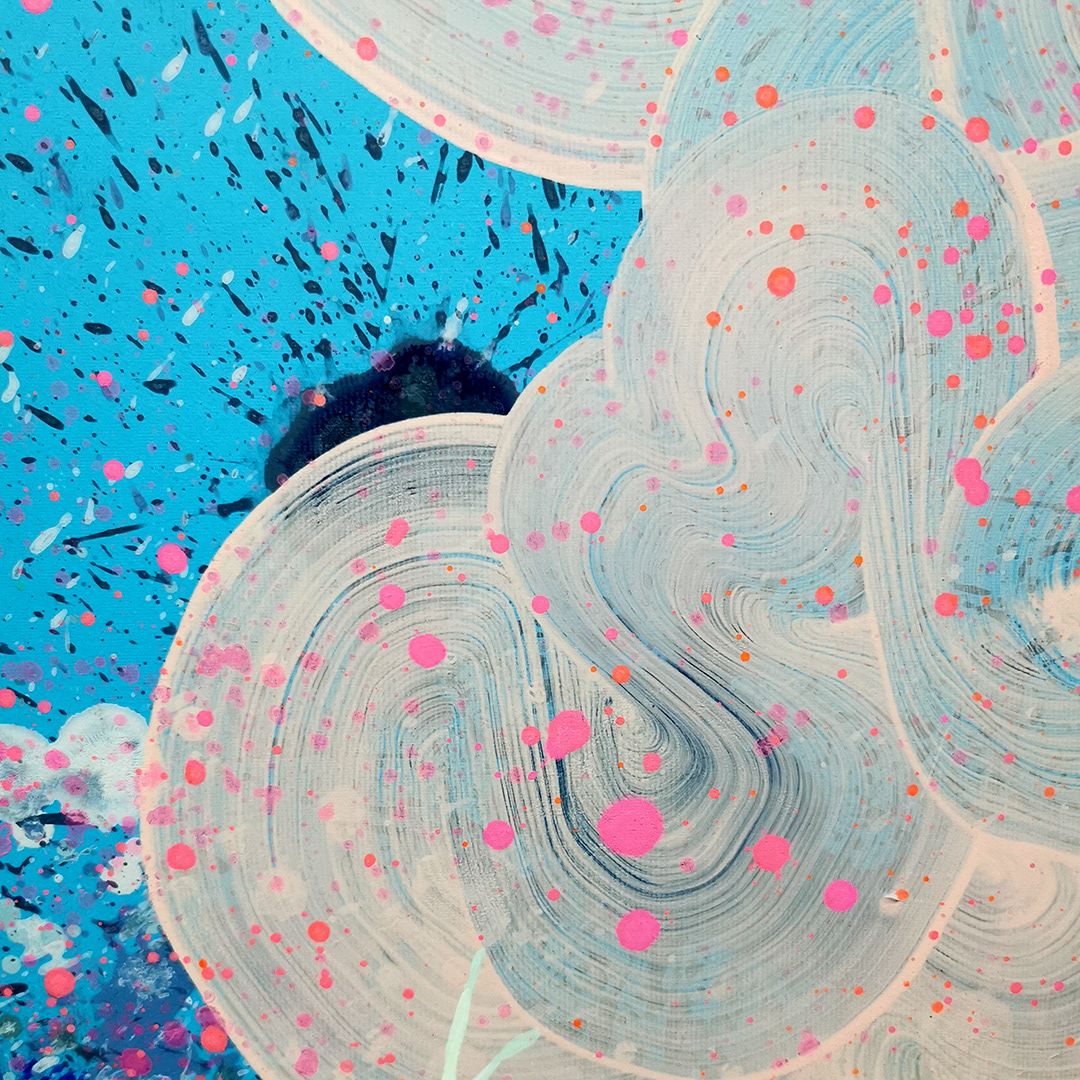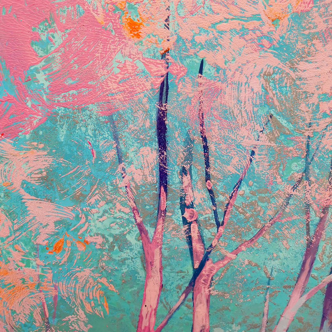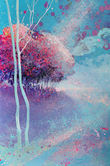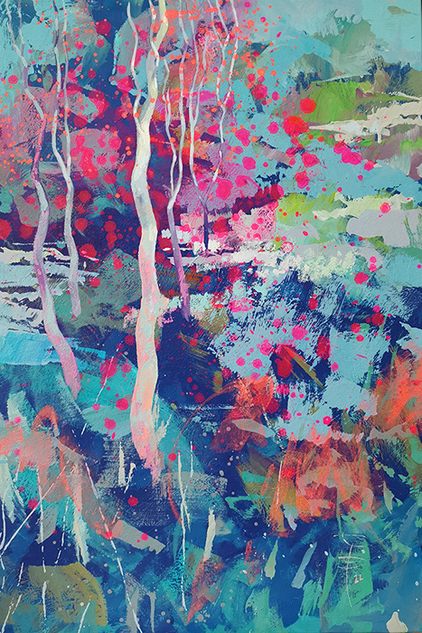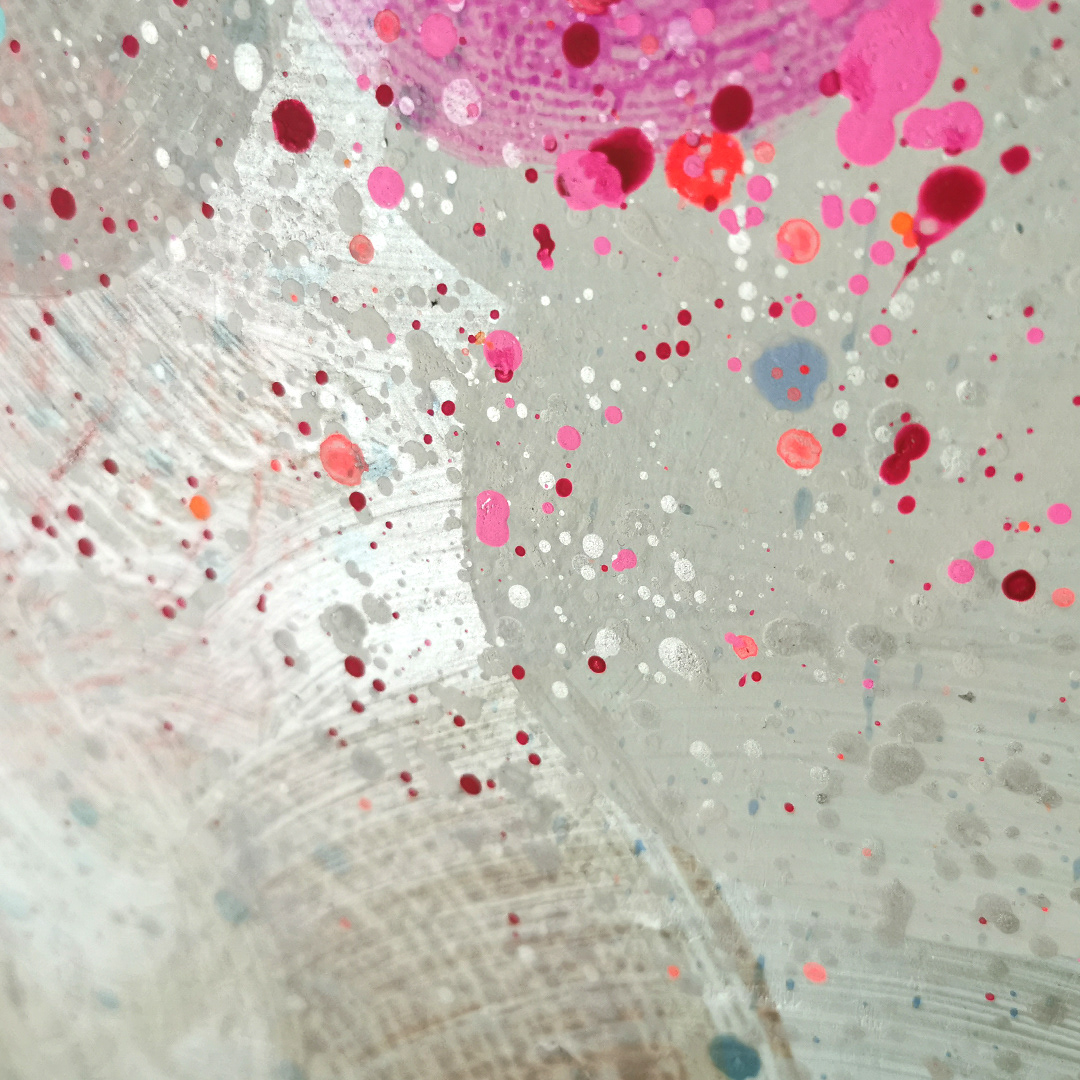 Większość prac ma elementy farby fluorescencyjnej, metalicznej, na niektórych jest brokat, co czyni prace zmienne w zależności od oświetlenia, nawiązując tym samym do zmienności prawdziwych pejzaży. Zderzenie form, kształtów, sugestii, daje za to ogromną przestrzeń do interpretacji i tym samym procesu współtworzenia dla widza.