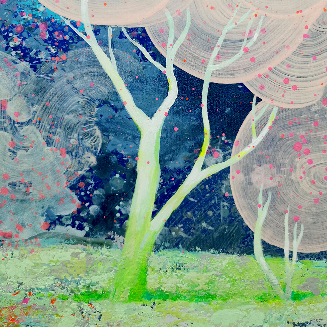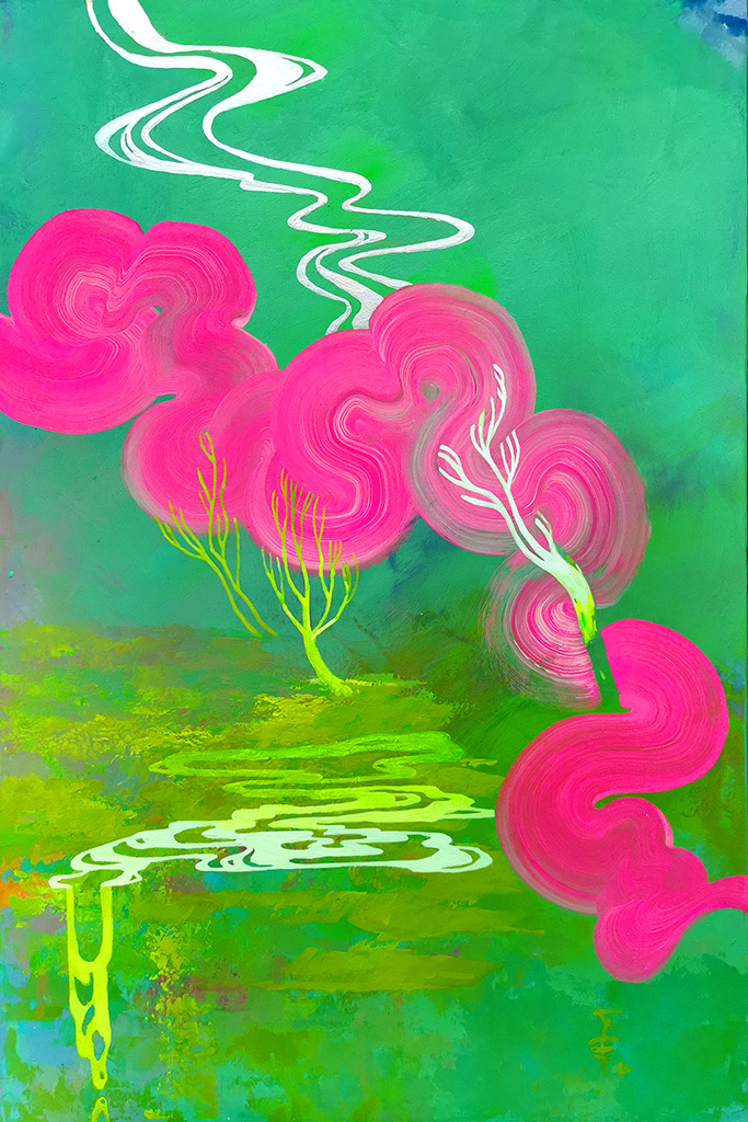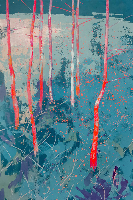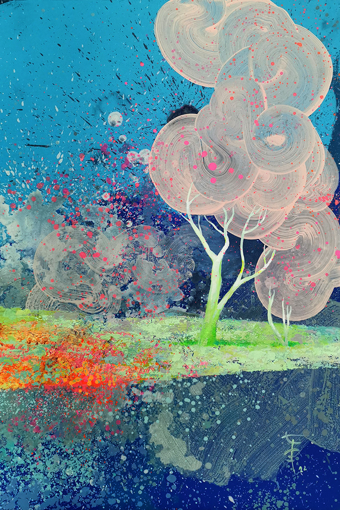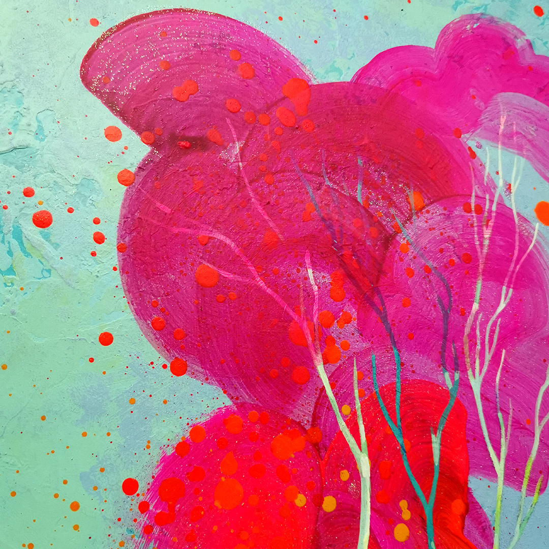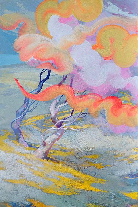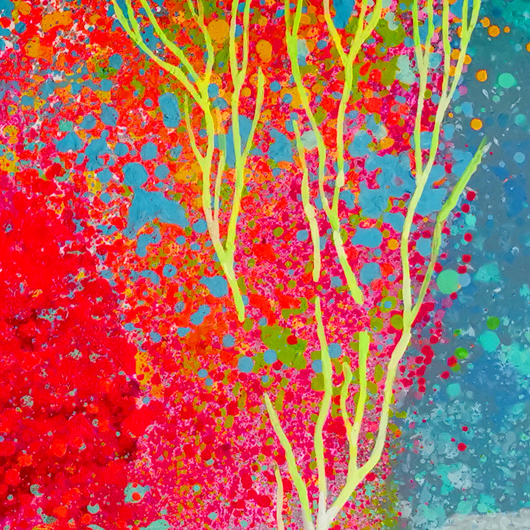 Większość prac ma elementy farby fluorescencyjnej, metalicznej, na niektórych jest brokat, co czyni prace zmienne w zależności od oświetlenia, nawiązując tym samym do zmienności prawdziwych pejzaży. Zderzenie form, kształtów, sugestii, daje za to ogromną przestrzeń do interpretacji i tym samym procesu współtworzenia dla widza.