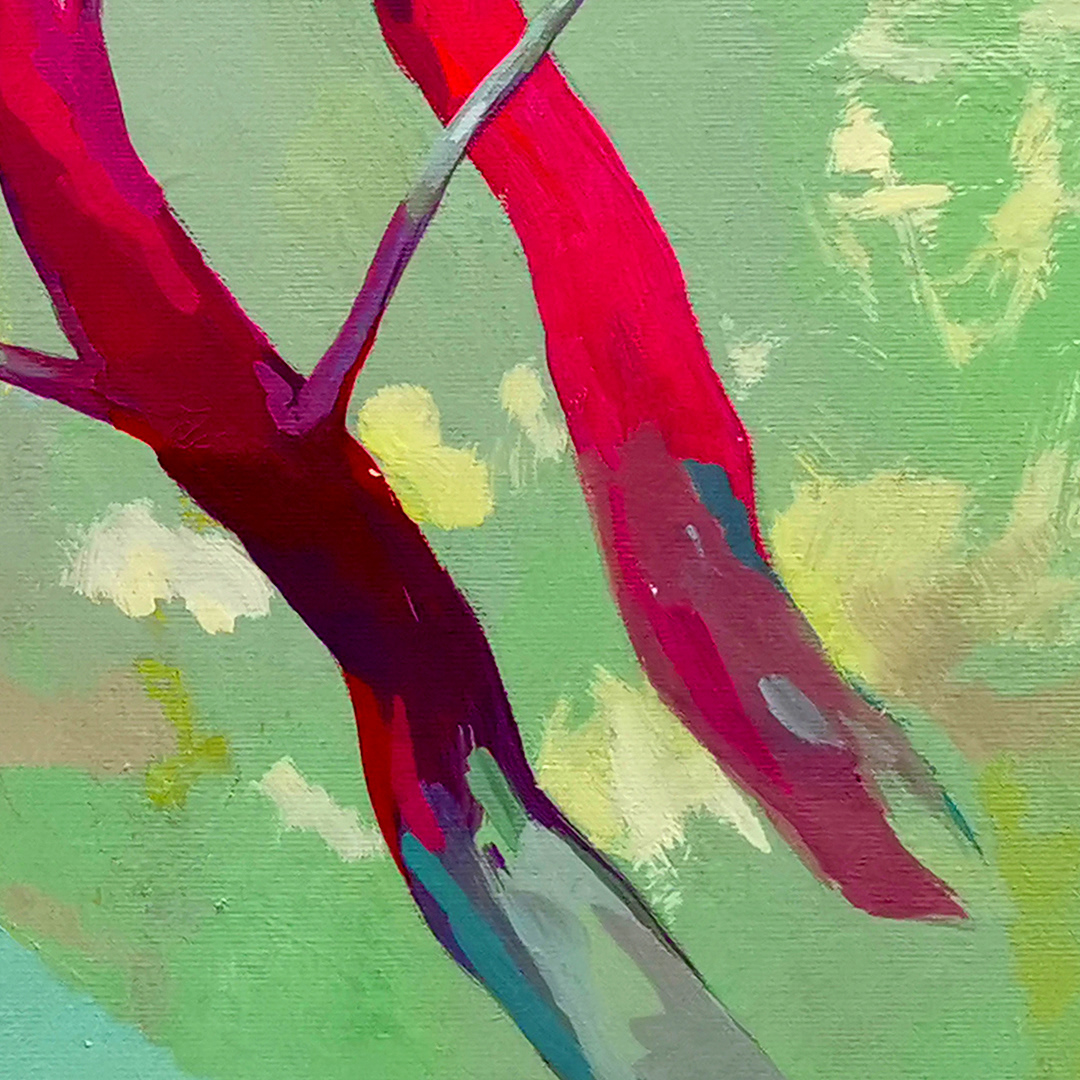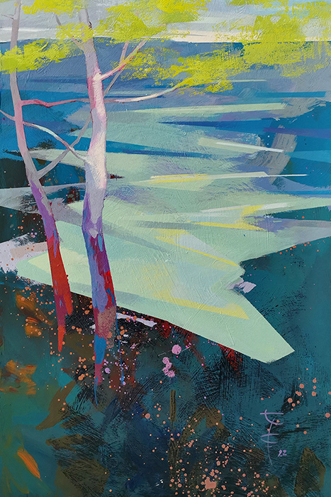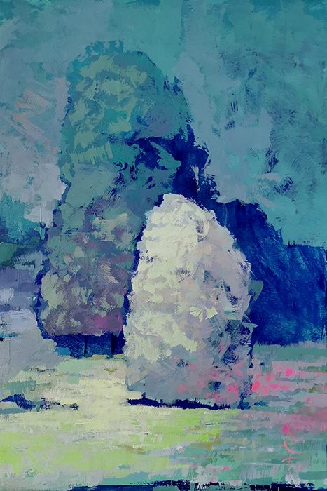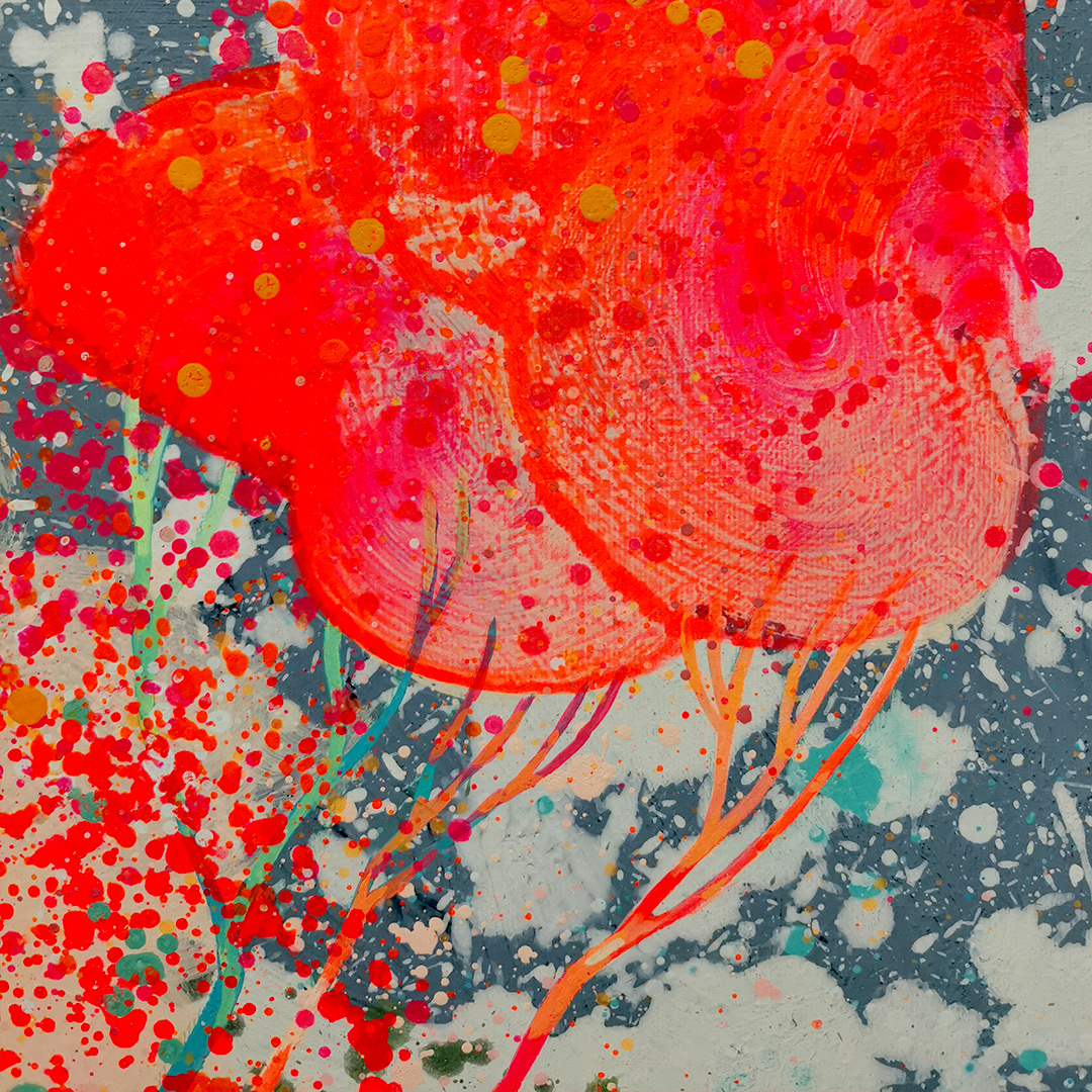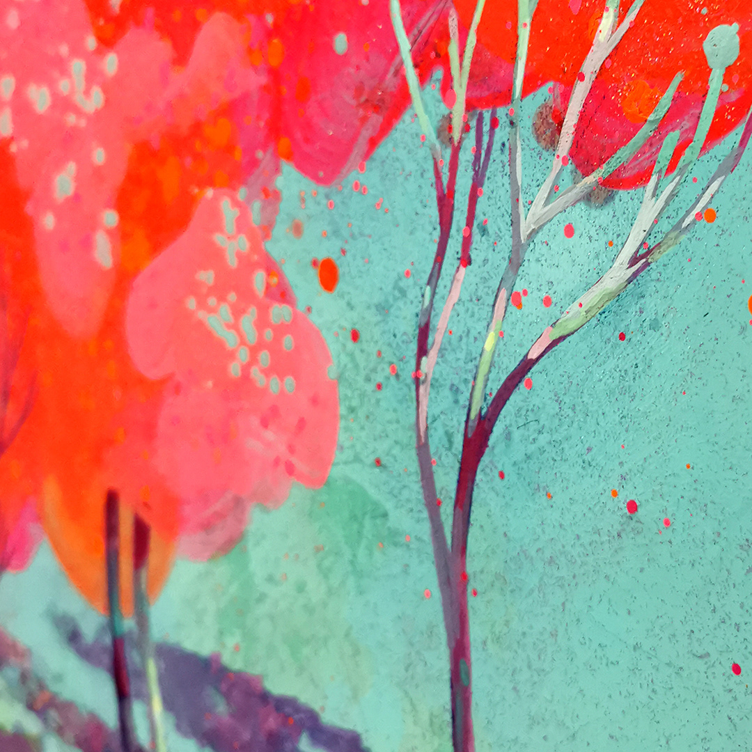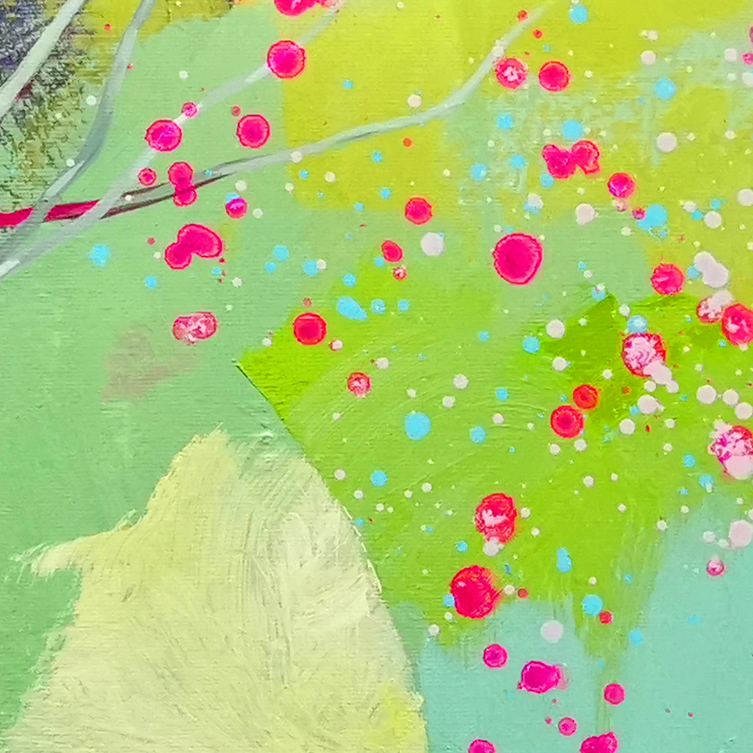 Większość prac ma elementy farby fluorescencyjnej, metalicznej, na niektórych jest brokat, co czyni prace zmienne w zależności od oświetlenia, nawiązując tym samym do zmienności prawdziwych pejzaży. Zderzenie form, kształtów, sugestii, daje za to ogromną przestrzeń do interpretacji i tym samym procesu współtworzenia dla widza.