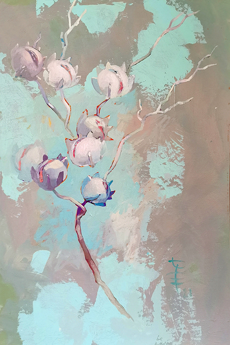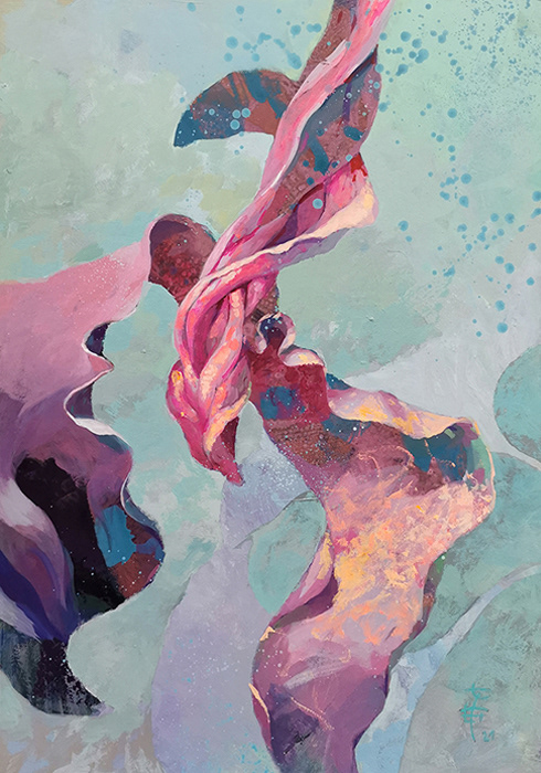 I started working on the Essence cycle in 2019, I come back to it from time to time and discover new qualities for myself. It's nice to associate with these feelings when I paint works from this set, I want to talk about the female experience, about passion, creativity and joy. All of these things vibrate in this project.