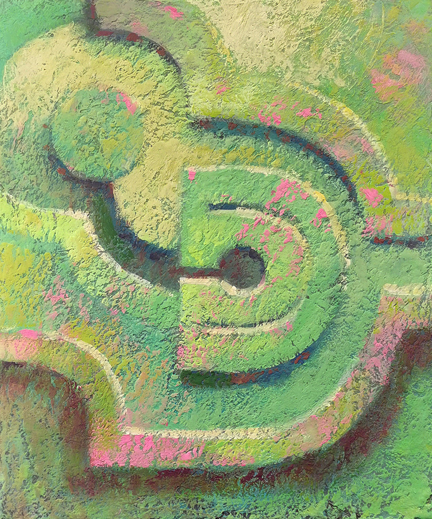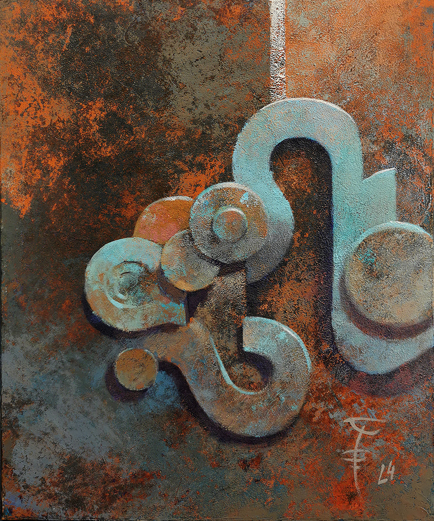 W tej serii obrazów z cyklu "Stan się tym, kim jesteś" każdy kształt, każdy detal jest zaproszeniem do odkrycia naszej wewnętrznej przestrzeni. Na obrazie kulka symbolizuje nas – jednostkę, która nie musi pasować do żadnego zewnętrznego wzorca. Obrazy ukazują reliefowe ścieżki i płaszczyzny, które sugerują jakby przestrzeń stworzona na miarę, ale kulka, choć nie wpasowuje się w te układy, znajduje swoje miejsce, przyjmując swój kształt bez potrzeby dopasowywania się do narzuconych norm. Ta niepasująca część, ta niemożliwość dopasowania, staje się istotą całej przestrzeni, ukazując, że bycie sobą to najpiękniejsze miejsce, w jakim możemy się znaleźć.