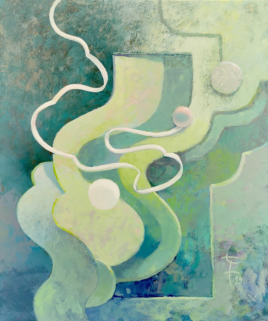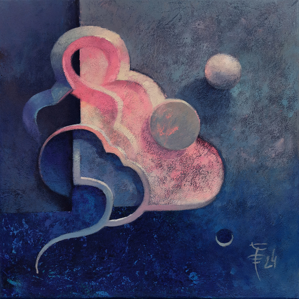 Obrazy, pełne nieoczywistych form i symboliki, oddają ideę, że nie musimy spełniać zewnętrznych oczekiwań. Tak jak kulka, która znajduje swoje miejsce w przestrzeni, mimo że nie przynależy do wzorców, tak i my możemy odnaleźć harmonię w byciu sobą, w przyjęciu swojego autentycznego kształtu. Każdy z tych obrazów stawia pytanie: Czy rzeczywiście musimy dostosować się do utartych ścieżek, czy możemy po prostu być w tym, czym jesteśmy, bez potrzeby dopasowywania się do form, które nie pasują do naszej unikalnej natury?