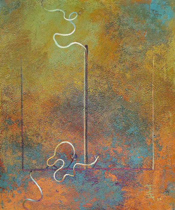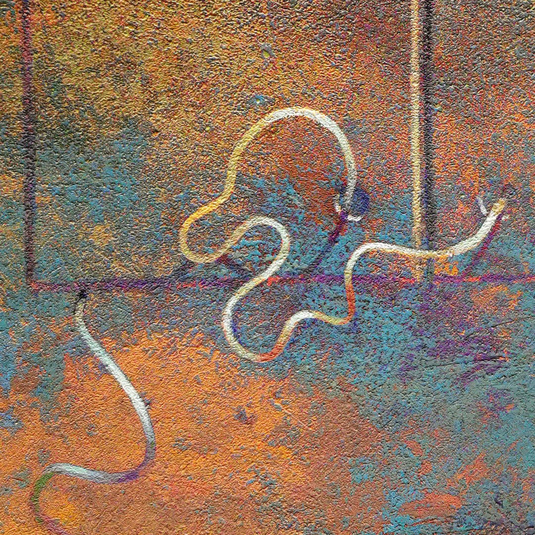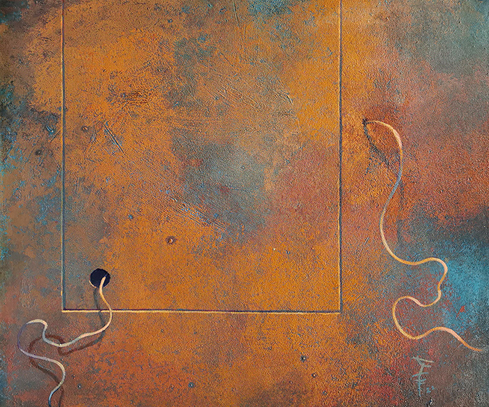 W tym cyklu widzimy kadry, tylko fragmenty, świat na pracach ma otwory, które sugerują inną stronę, kontynuację, rozszerzenie. Ciągłość, a jednocześnie ograniczony punkt zastanej rzeczywistości, co jest po drugiej stronie? Czym jest nić która łączy te światy? Czy odpowiedź jest prawdą? Właściwie co jest prawdą?