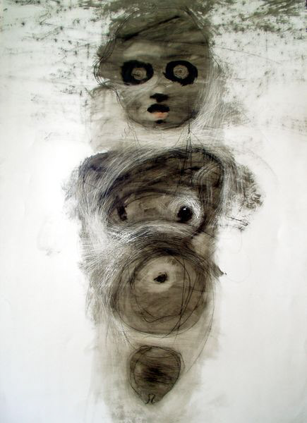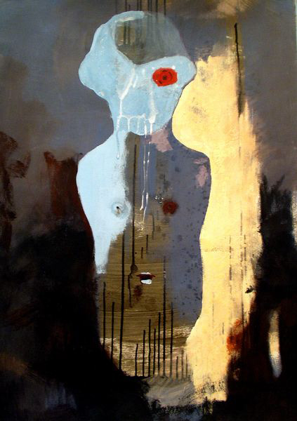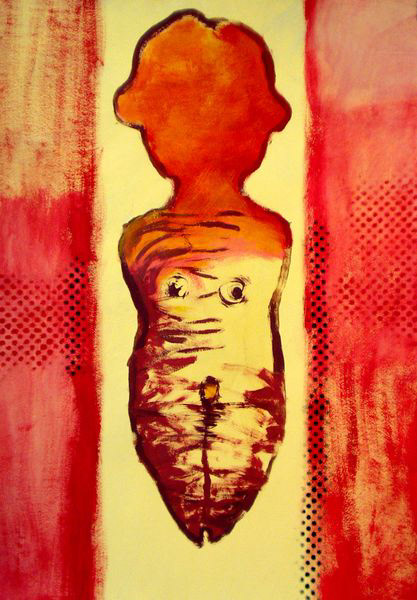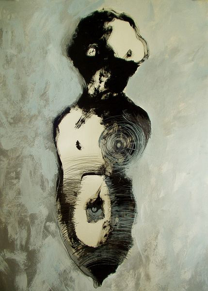 To cykl obrazów, który narodził się w 2002 roku jako artystyczny eksperyment i zarazem medytacja nad tematem utknięcia, zatrzymania, a jednocześnie możliwości przemiany. W serii kilkudziesięciu prac (akrylowych i mieszanych, w formacie 100×70 cm na papierze) sięgam po ten sam prosty szablon lalki pozbawionej kończyn – symbolicznej, niekompletnej postaci, której forma nabiera głębokiego, metaforycznego znaczenia.
